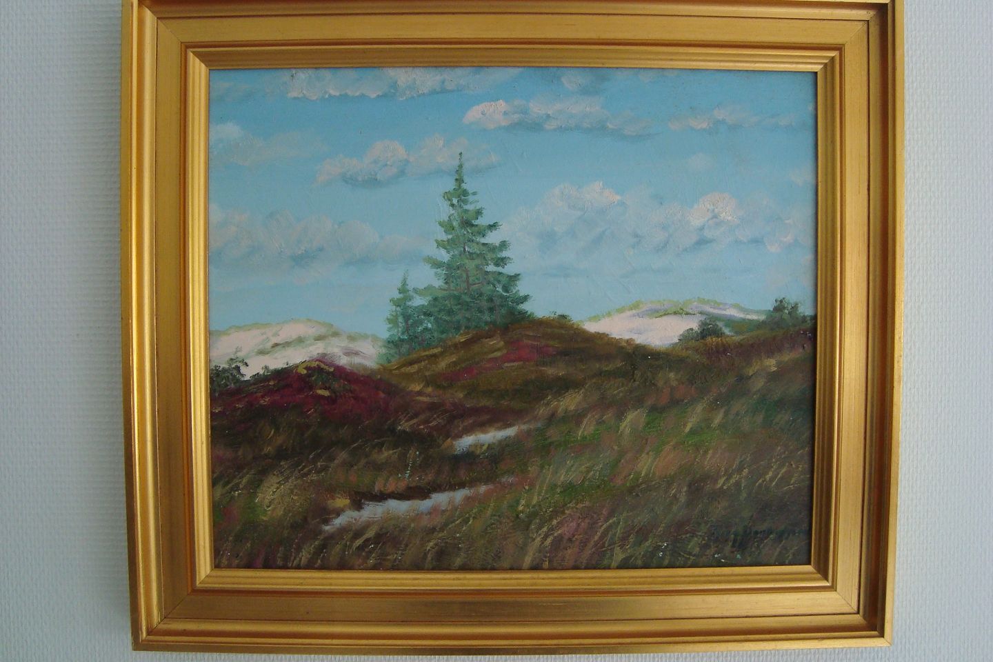 Maleri - Finn Dannerfjord - Klitlandskab med graner.