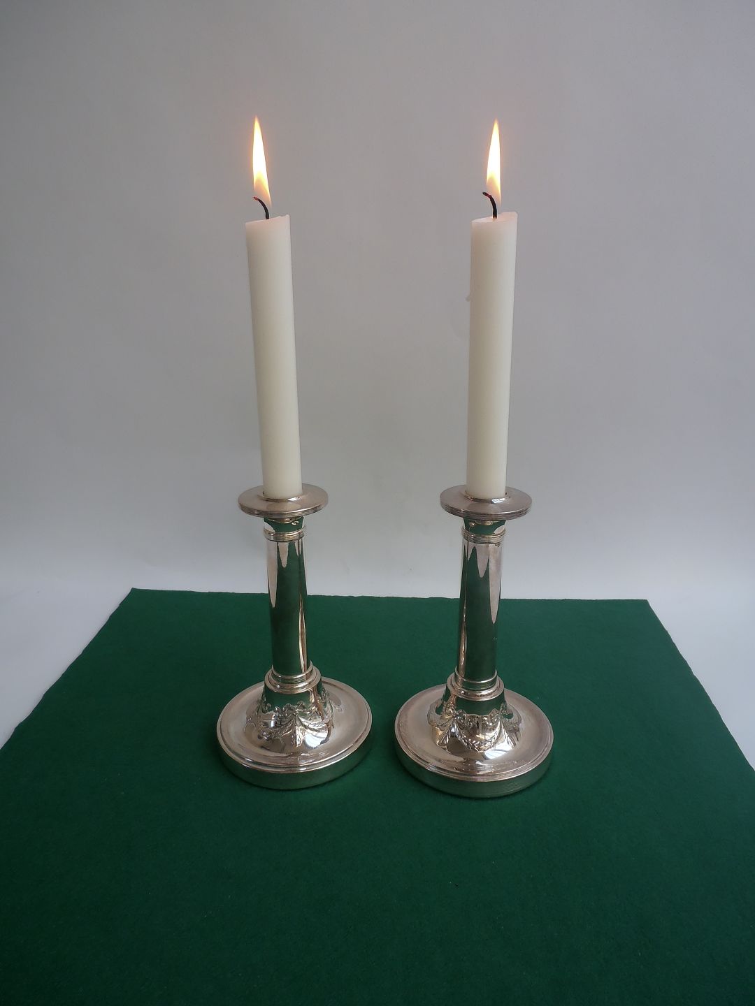 Ny forsølvede Empirestager i plet, Danmark ca. 1870.