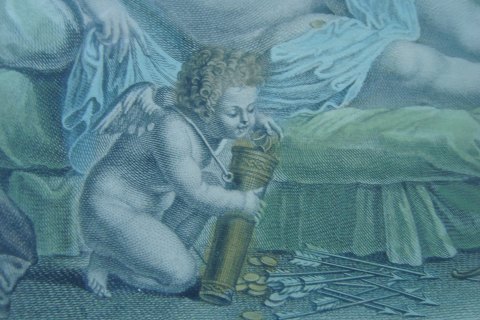 Koloreret kobberstik af Noël le Mire - Jupiter & Danaé.