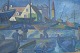 Maleri V. Feilberg - Havneparti med arbejdende fiskere ved deres både.