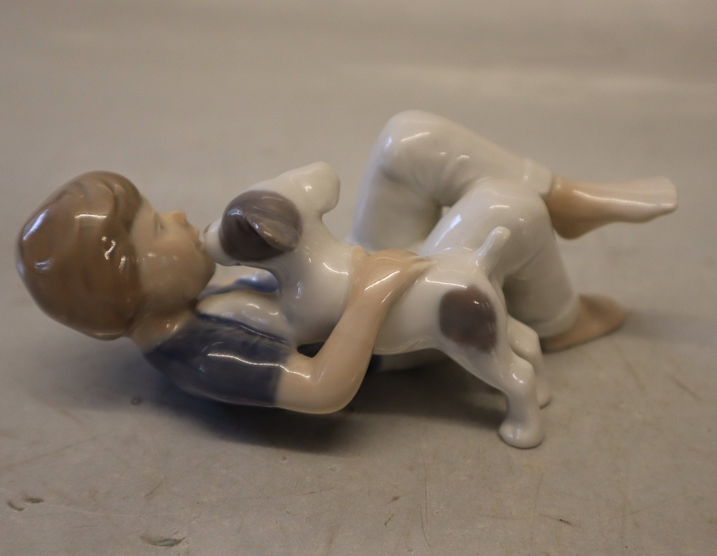 5660 Kgl. Dreng med hund 6 x 12 cm, Sterrett Kelsey fra Royal Copenhagen I hel og fin stand