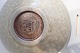 Eva Stæhr-Nielsen (1911 - 1976) for Saxbo. Signeret E.St.N., Denmark. design: 217. Lys, okkergul og brun stentøjsskål med stemplet mønster. Højde: 8 cm. - diameter: 17,7 cm.