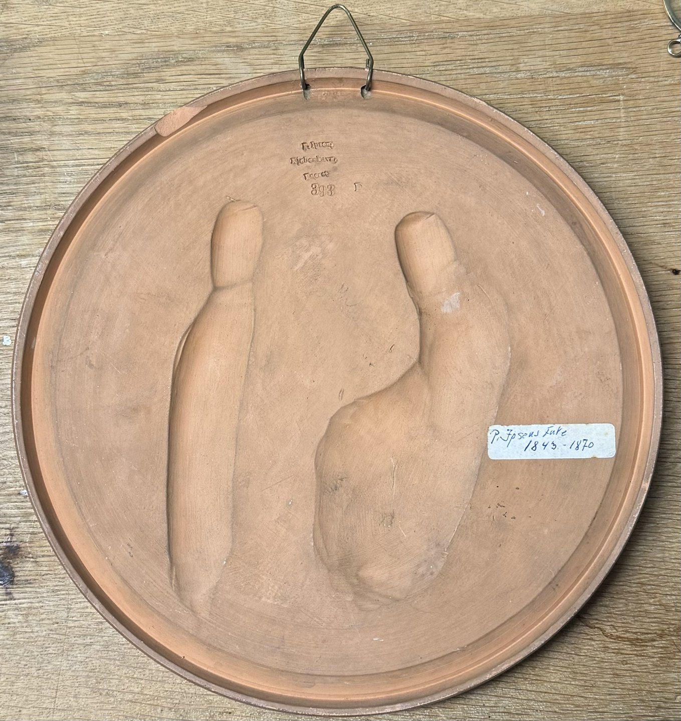 Platte i terracotta fra P. Ipsen med B. Thorvaldsen motiv