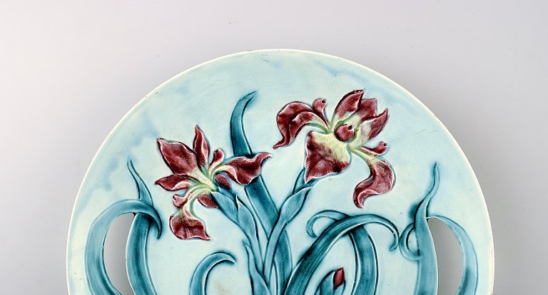 Gustavsberg Art Nouveau earthenware dish decorated with flower.