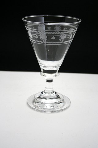 Vinglas krystal med sleben bort med sol, halvmåne og stjerne. Højde 15 cm. Øverste diameter 9,5 cm. Pris: 375 kr. Lager: 1