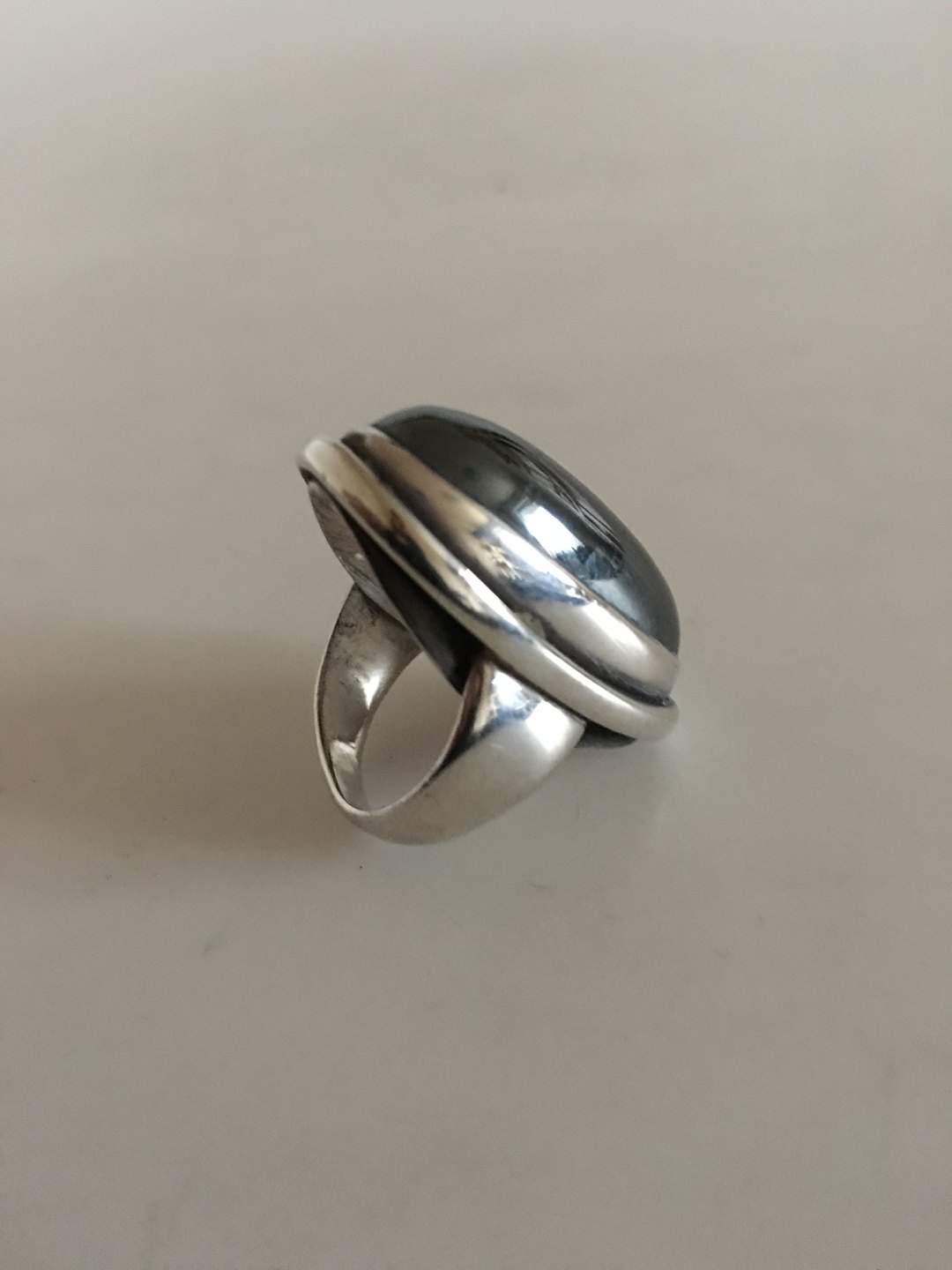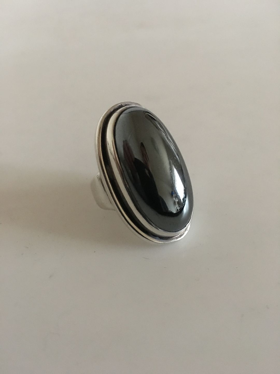 Georg Jensen Sterling Sølv Ring No 46E med Hæmatit. Ringstørrelse 50. Vejer 26 gram. Fra efter 1945.