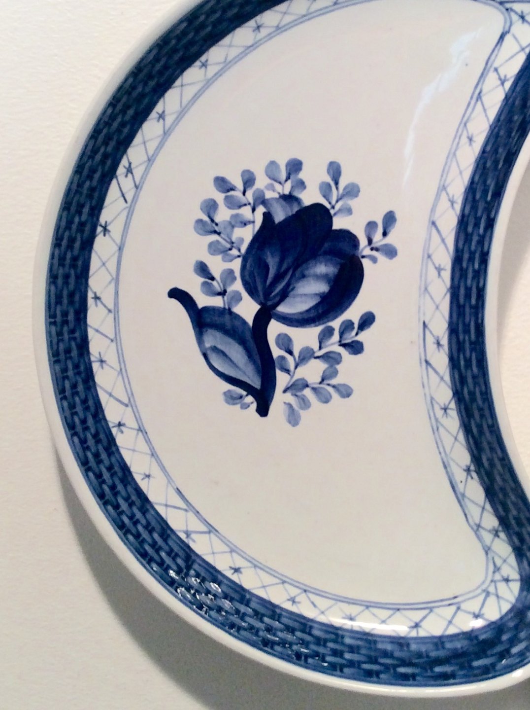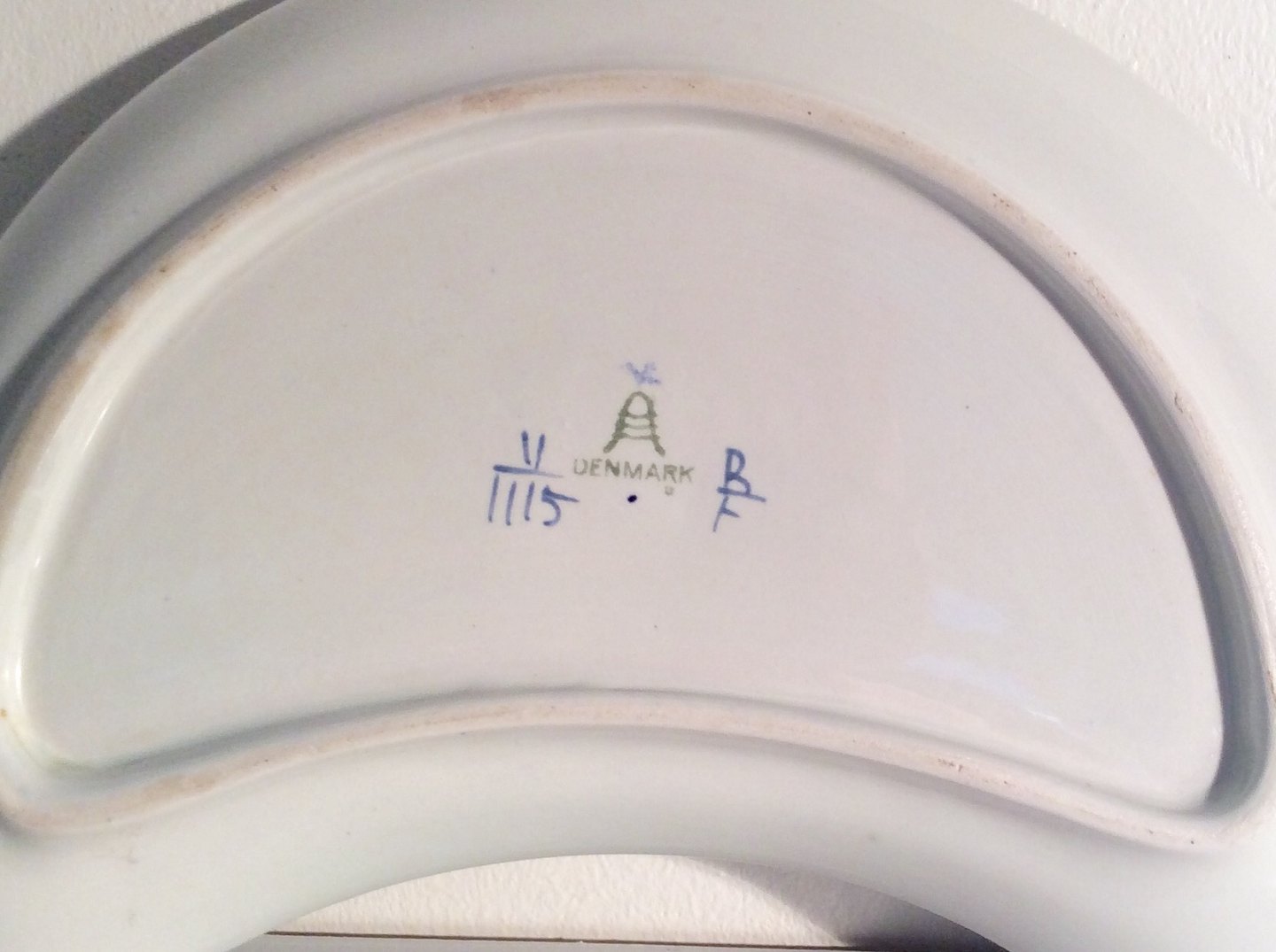 Royal Copenhagen, Aluminia, Trankebar, Moon-shaped dish # 11/1115, 22.5cm wide, 1.Sorting, Design Christian Joachim *With cracks and some discoloration under the glaze*
