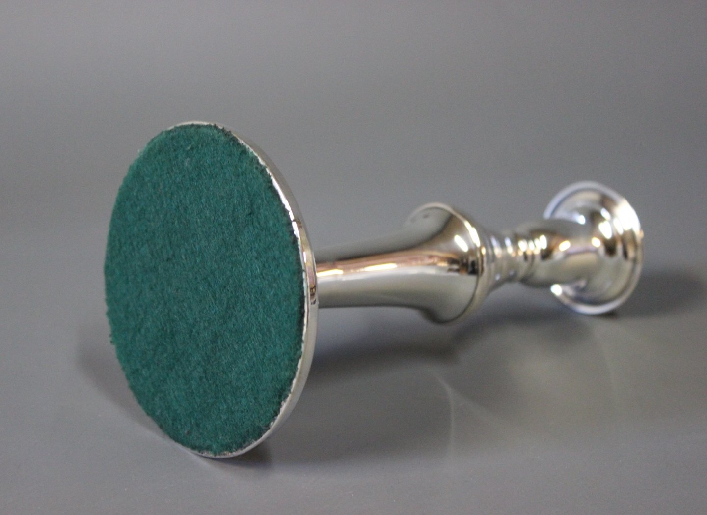 Mindre lysestage med perlekant i 830 sølv og med grøn filt bund.