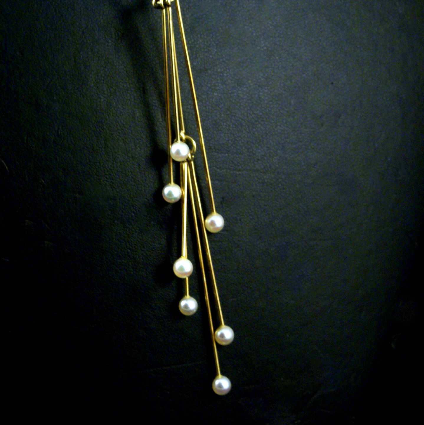 Guldvirke. Halsring 14k guld med kulturperler. 1960erne