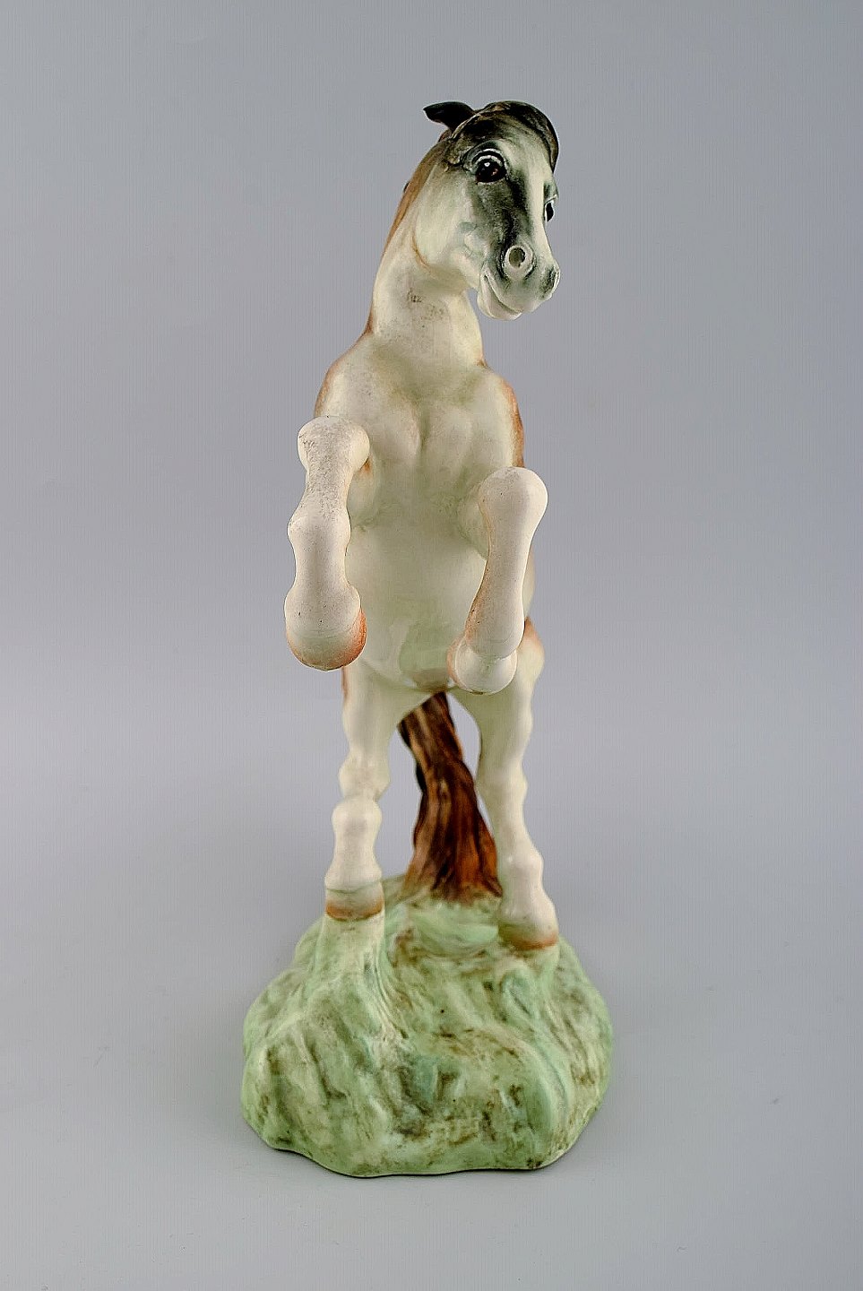 Stor Goldschneider figur i porcelæn, stejlende hest.