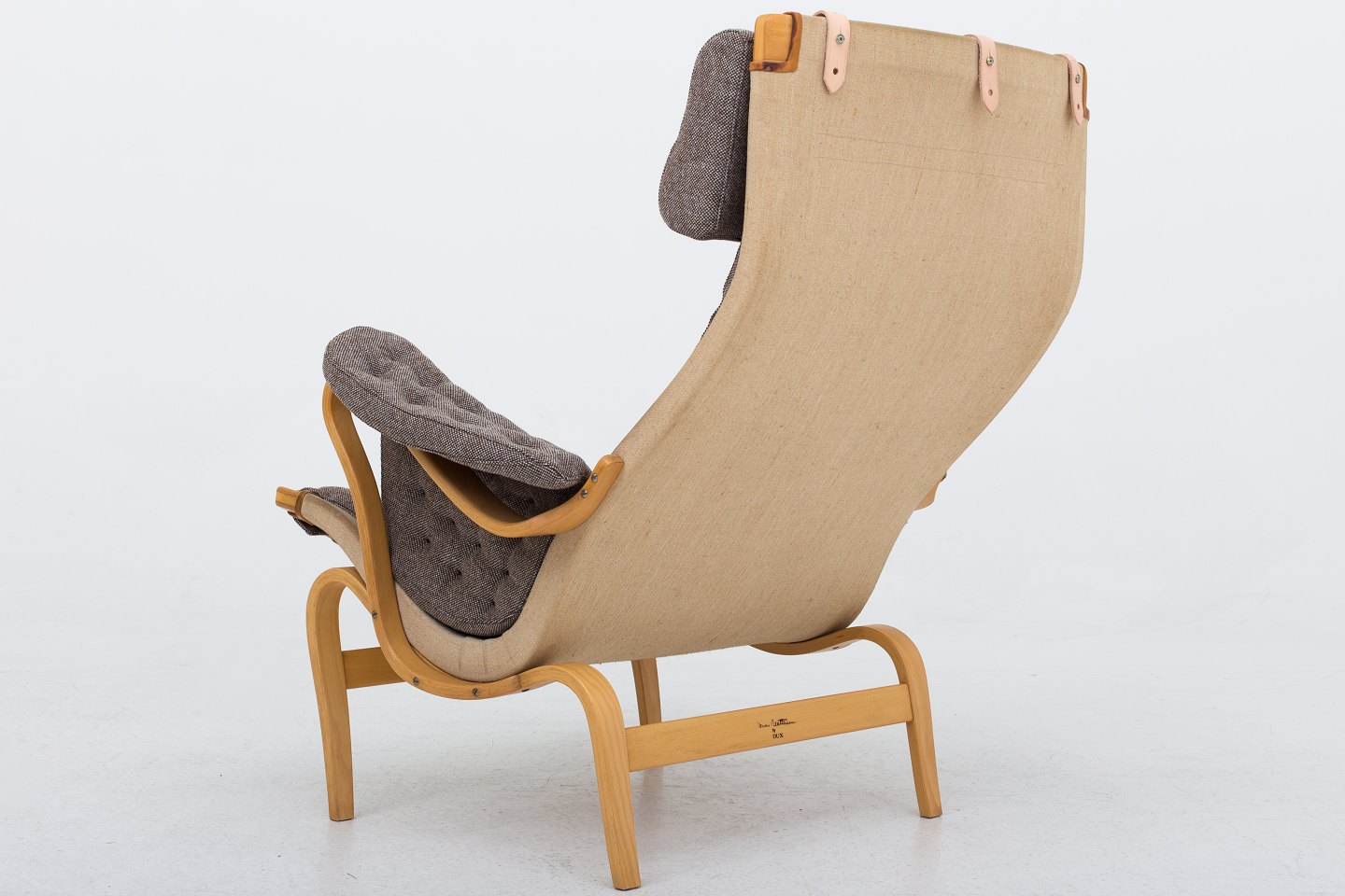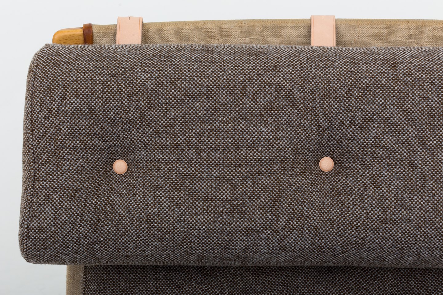 Pernilla 69 - Nybetrukket lænestol i Hallingdal 65 (code 270) og vegetallæder-knapper i nakkehynde. Stel i bøg