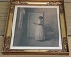 Peter Ilsted Mezzotinte Opus 33. Girl with tray. Original golden frame 65 x 55 cm