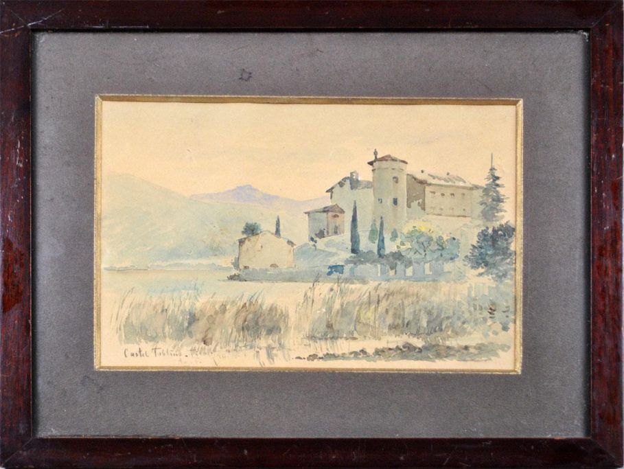 Fischer, August (1854 - 1921) Danmark. Castel Toblino. Akvarel. Signeret.: Aug. F 90. 17 x 24 cm.