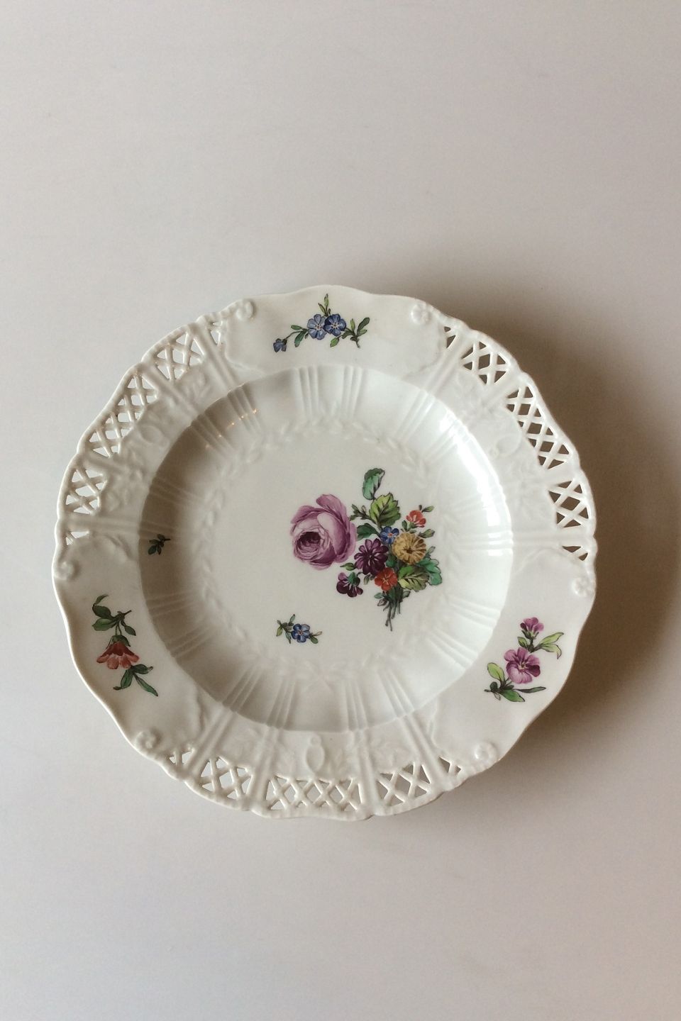 Royal Copenhagen Saksisk Blomst Middags-/Frugttallerken i luksusmodel med gennembrudt kant.