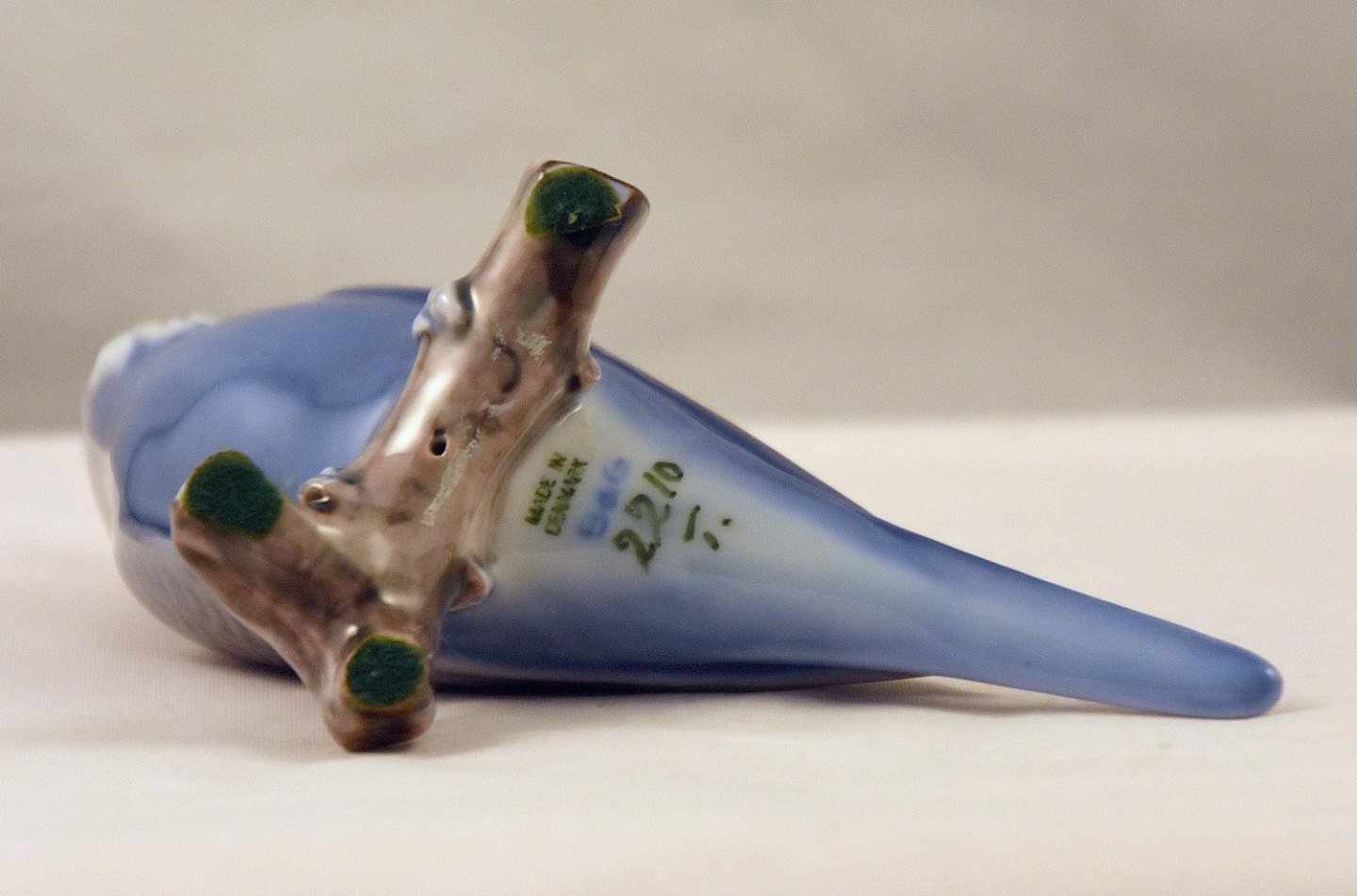 Bing og Grøndahl fugl i porcelæn, blå undulat nr. 2210, undulaten er 1. sortering, Arkivfoto