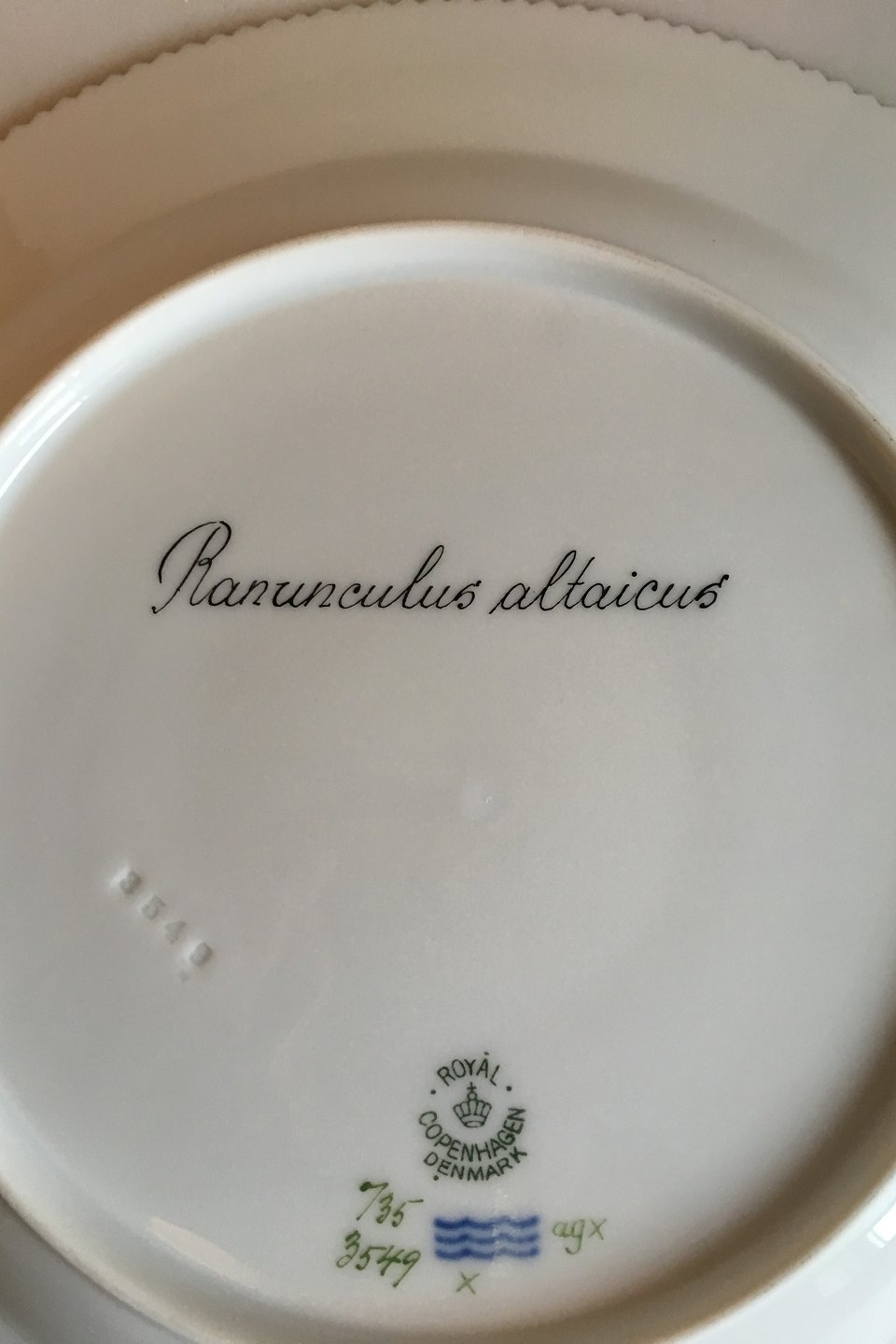 Royal Copenhagen Flora Danica Spisetallerken No 735/3549. Latinsk navn: Ranunculus altaicus
