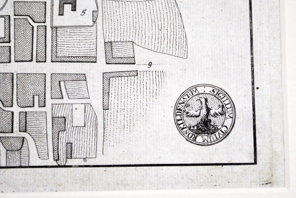 Haas, Jonas (1720 - 1775) Danmark. Bykort over Roskilde. Originalt kobberstik.