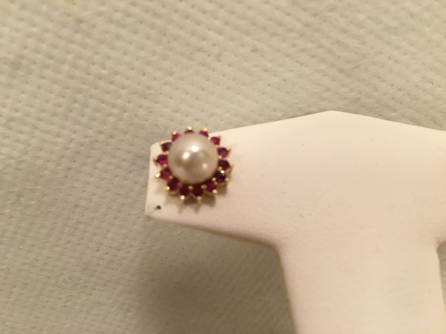 Ørestik med rubiner og perle.