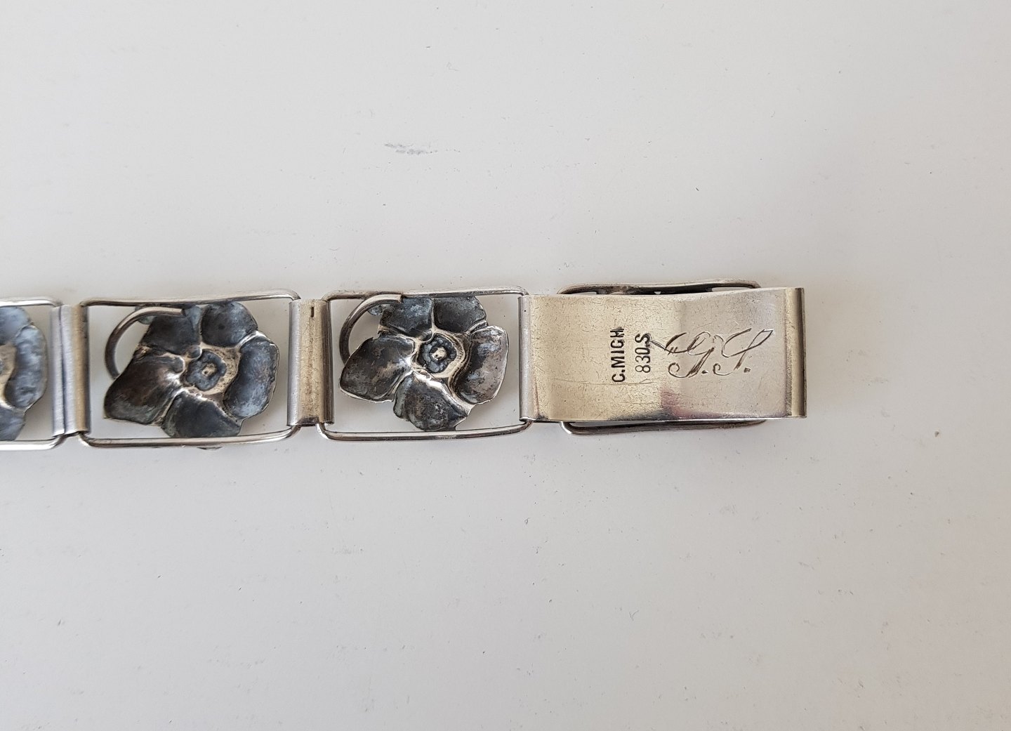 Smukt leddelt sølv armbånd i skønvirke stil