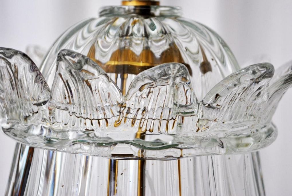 Venetiansk lofts krone i klar glas med guld, 1960'erne, Italien. 68 x 28 cm.