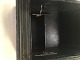 Old unique safe in miniature. standing on wooden shelf. with 2 drawers.