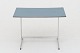 Sofabord på shaker-stel i stål og plade i blå formica. Fra SAS Hotellet og designet i 1958