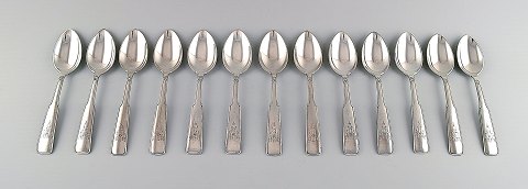 Hans Hansen sølvtøj Arvesølv nr. 2. 13 stk dessertskeer i 3-tårnet helsølv. 1937.