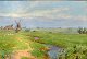 Soya-Jensen, Carl Martin (1860 - 1912) Danmark: Sommerlandskab med et åløb, i baggrunden en mølle.