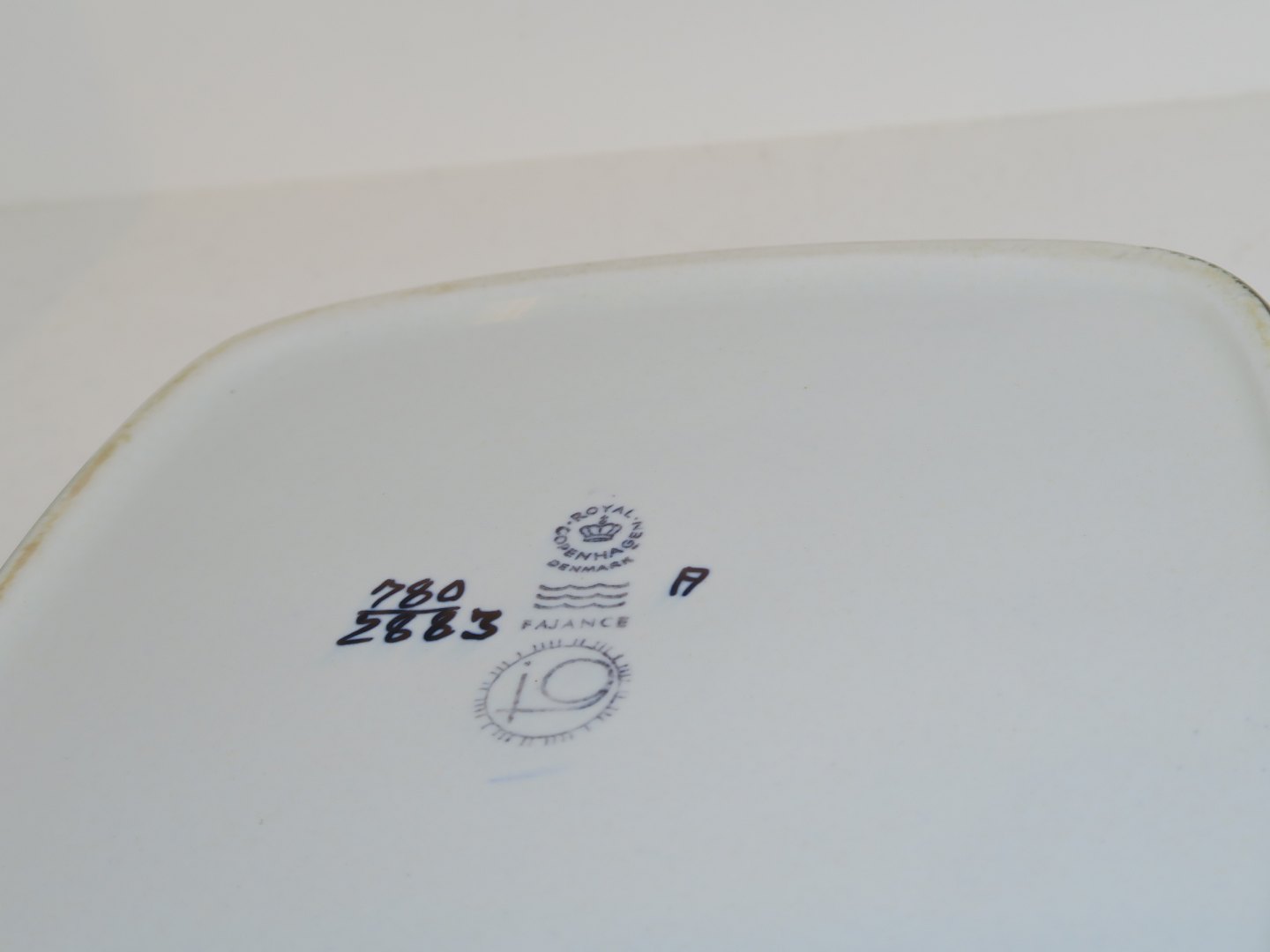 Royal Copenhagen Fajance Baca blå firkantet skål.