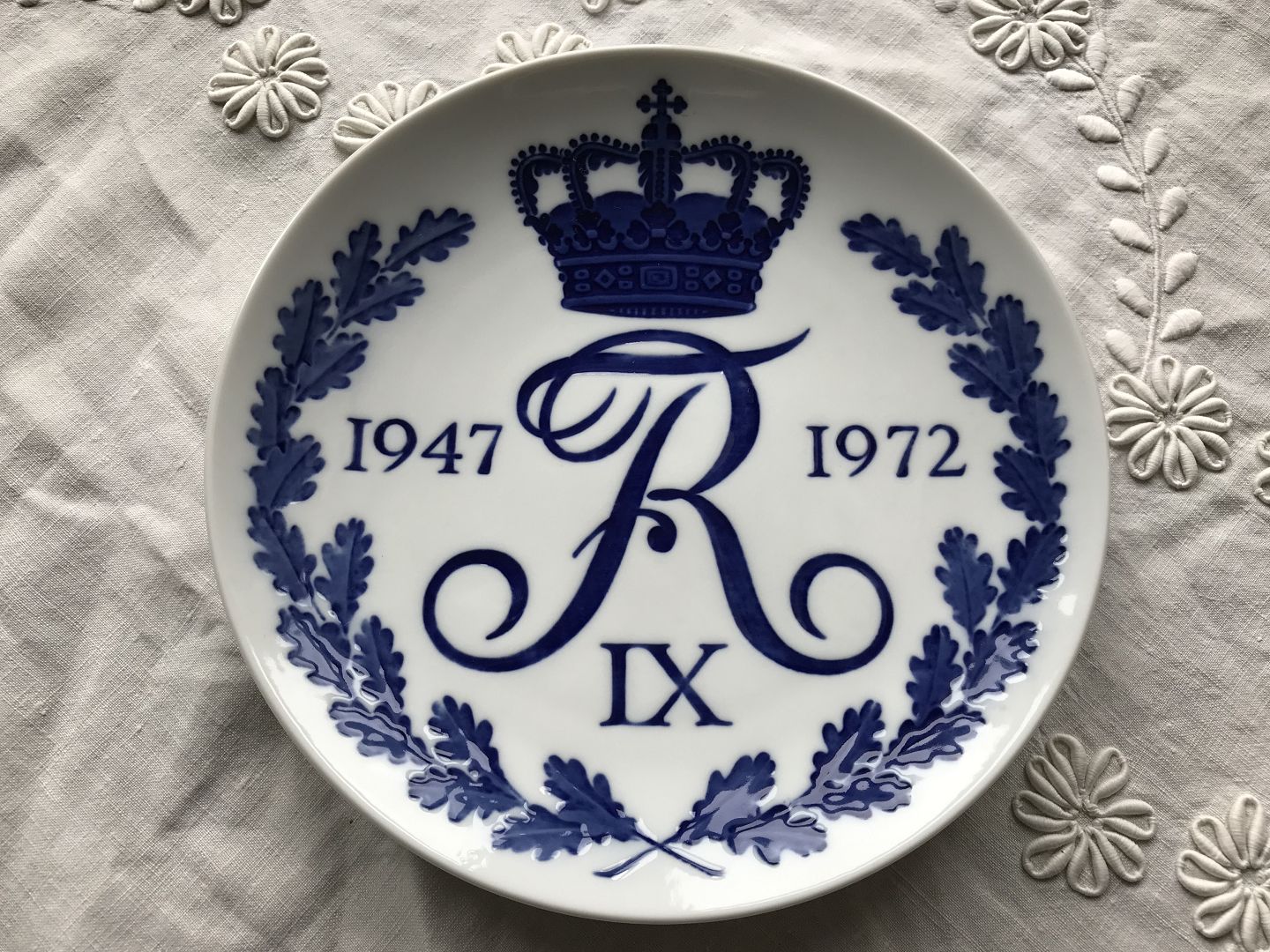 Royal Copenhagen, Mindeplatte, Frederik d.9s regeringsperiode 1947-1972, 18cm i diameter, 1.Sortering *Pæn stand*