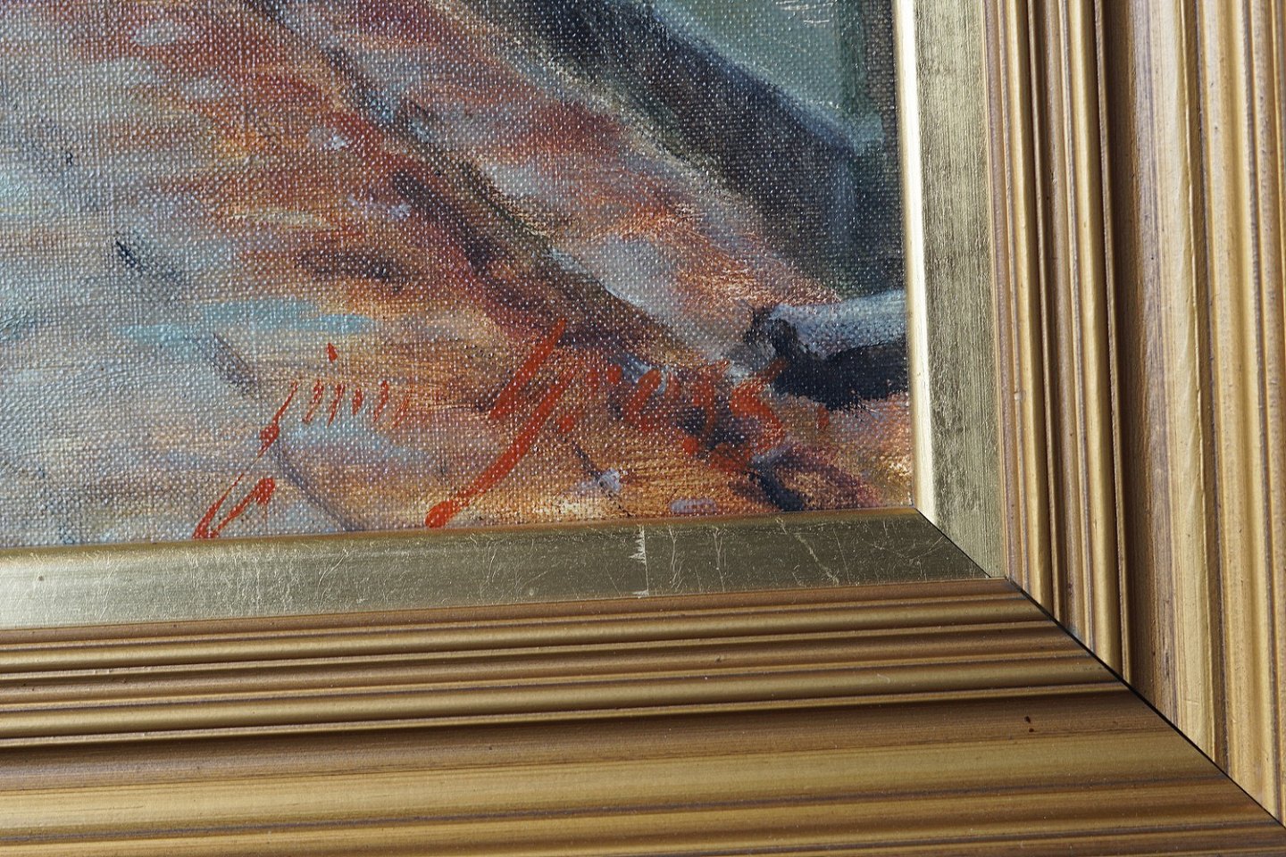 Olie på lærred, Byliv, Gade i Aalborg, maleri