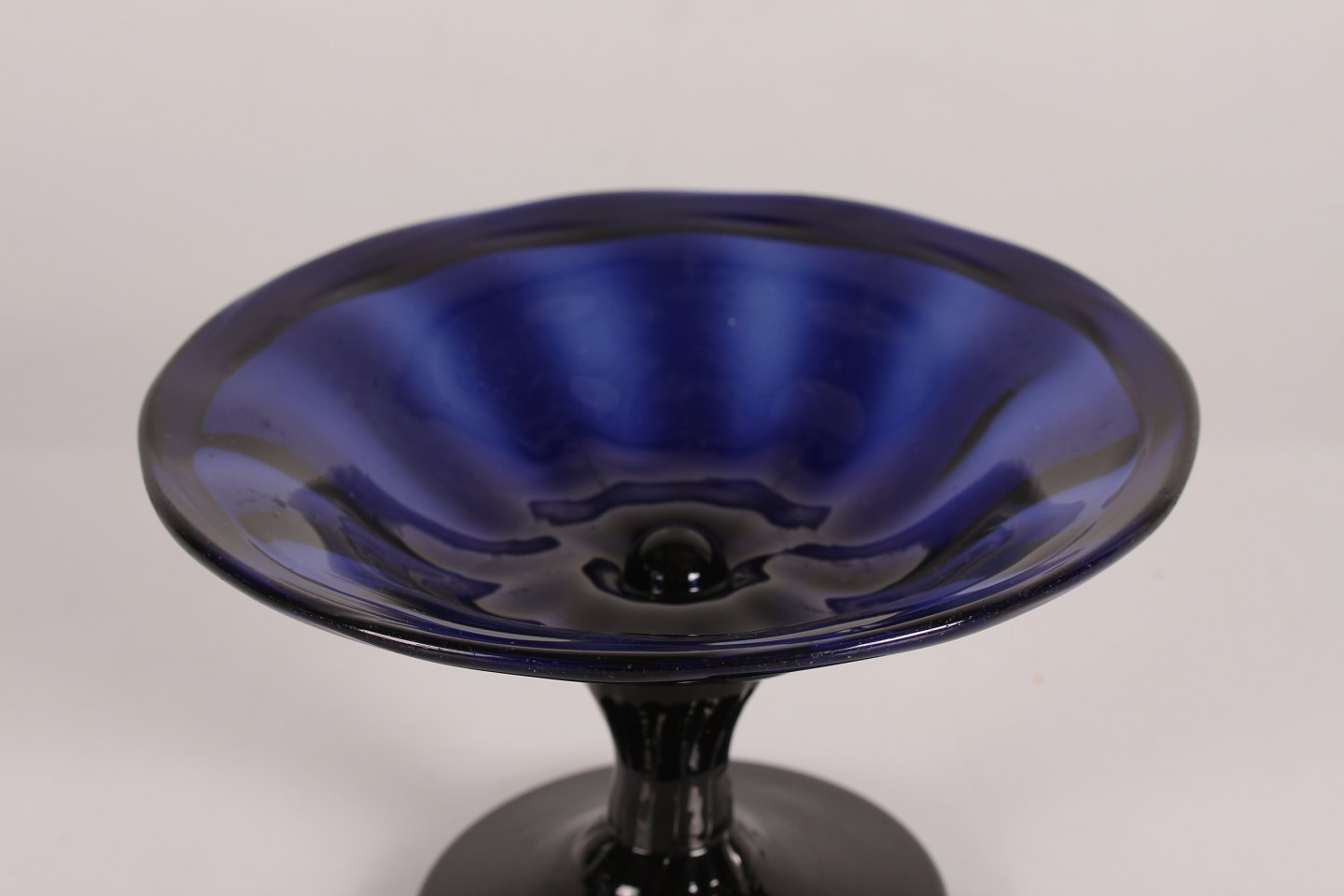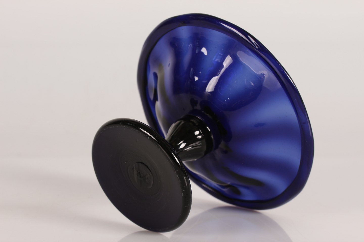 Fremstillet af mørkeblåt glas.