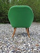 Grydestol i teaktræ med kantet sæde og grøn stofpolstring