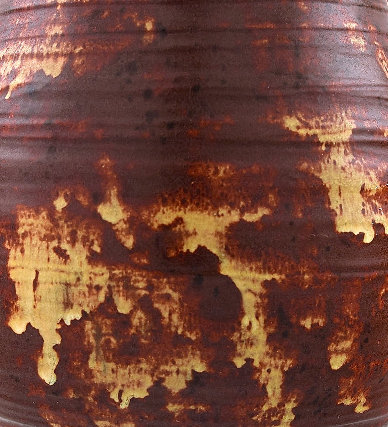 Michael Andersen kande med hank. Smuk glasur i røde og gule nuancer. 1950/60'erne.