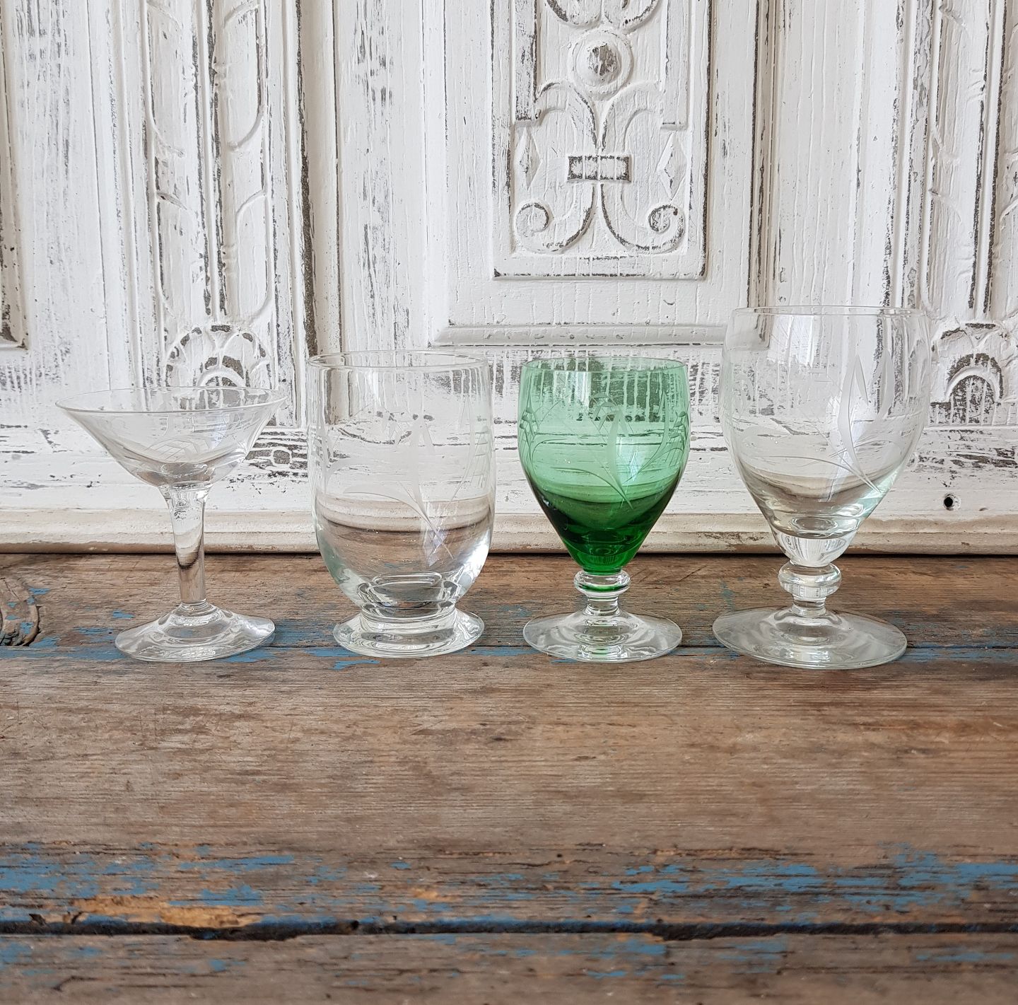 Hvidvin med grøn kumme - højde 10,5 cm. Lager: solgt