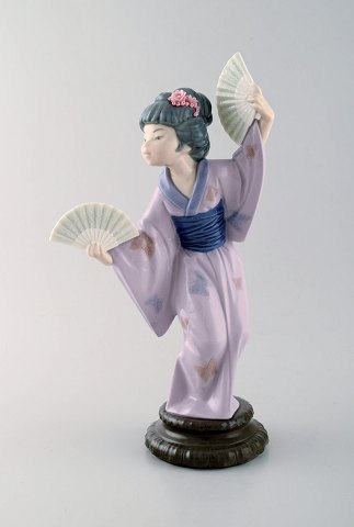 Lladro, Spanien. Stor figur i glaseret porcelæn. Geisha med vifter. 1900-tallet.