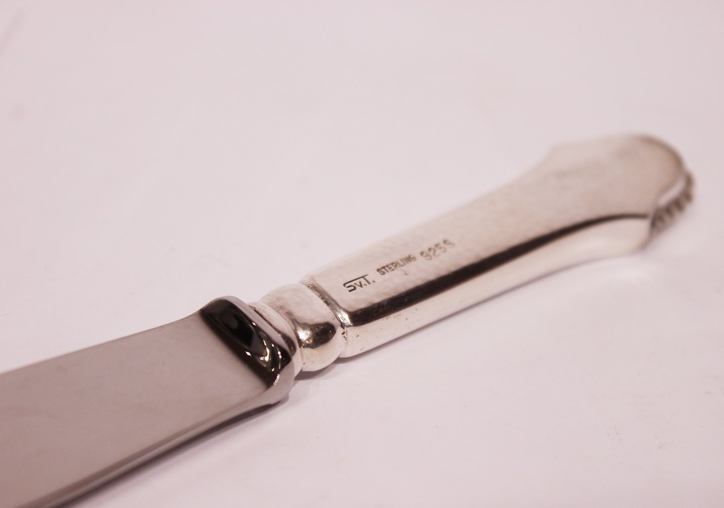 Middagskniv og frokostkniv i Christiansborg, tretårnet sølv. Spørg for antal på lager.