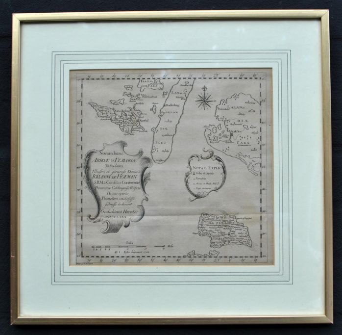 Landkort over Ærø og Femarn, 1766. Kobberstik. Udført af Johanni De Hofman. 24,5 x 24,5 cm.