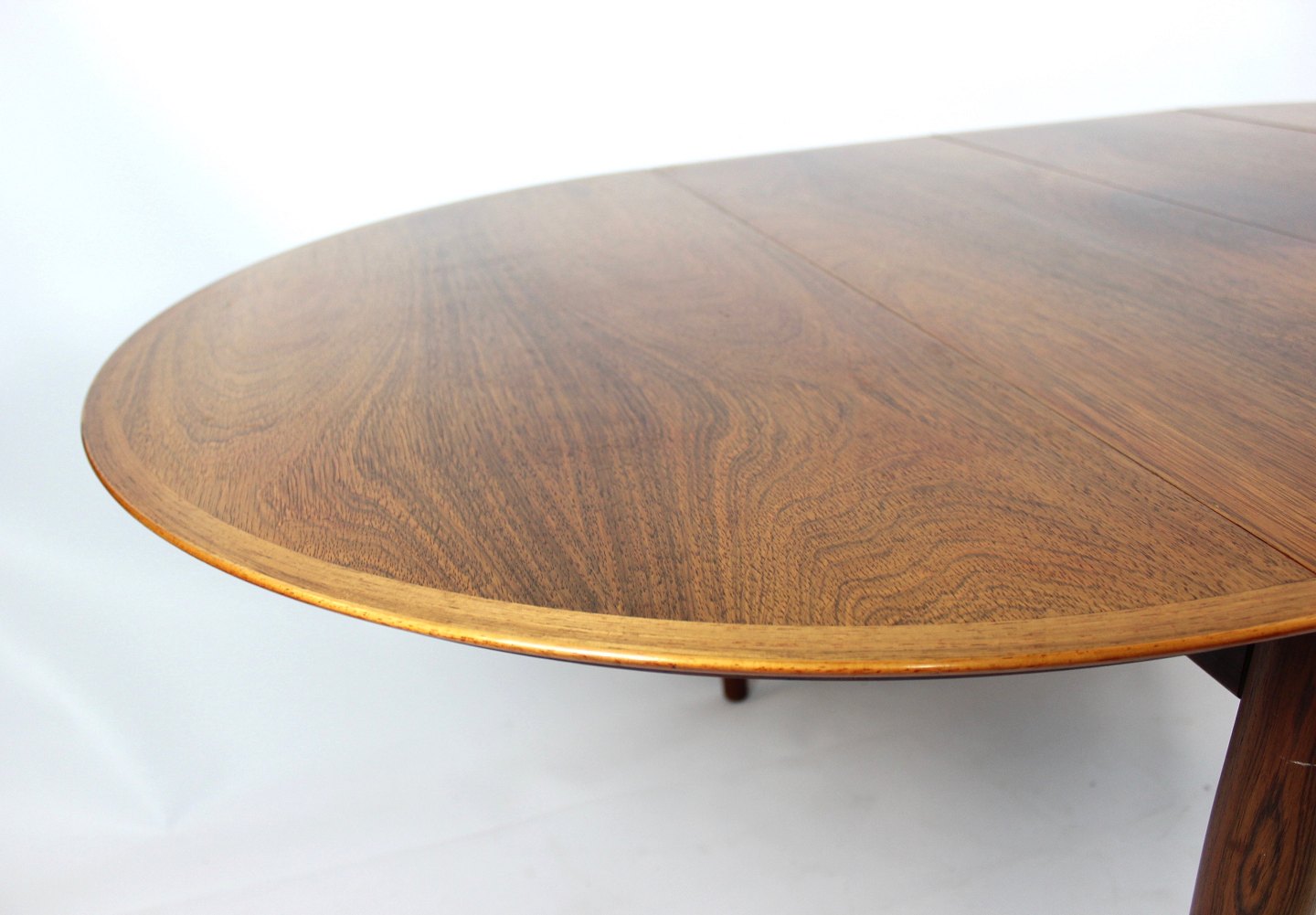 Spisebord med udtræk i palisander af dansk design fra fra 1960erne. Bordet vil blive sat i stand inden levering.