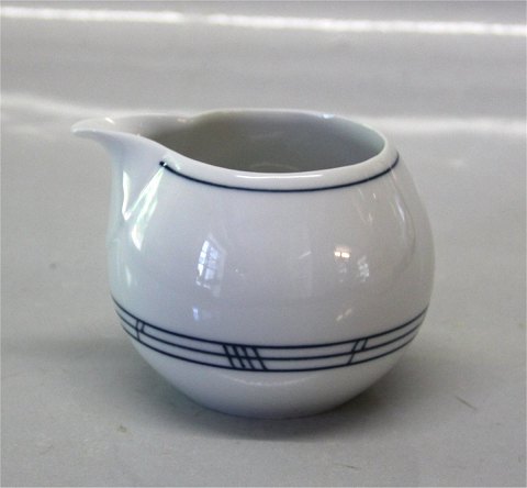 303 Flødekande 6,5 cm (189) B&G Delfi: Kraftigt hvidt porcelæn med mønster med blå streger, som Olympia, form 43 Bing & Grøndahl Delphi
