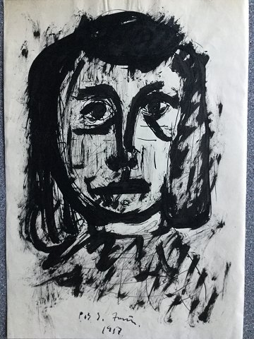 Tegning af Peder Brøndum Sørensen- Kvindeportræt 1957.