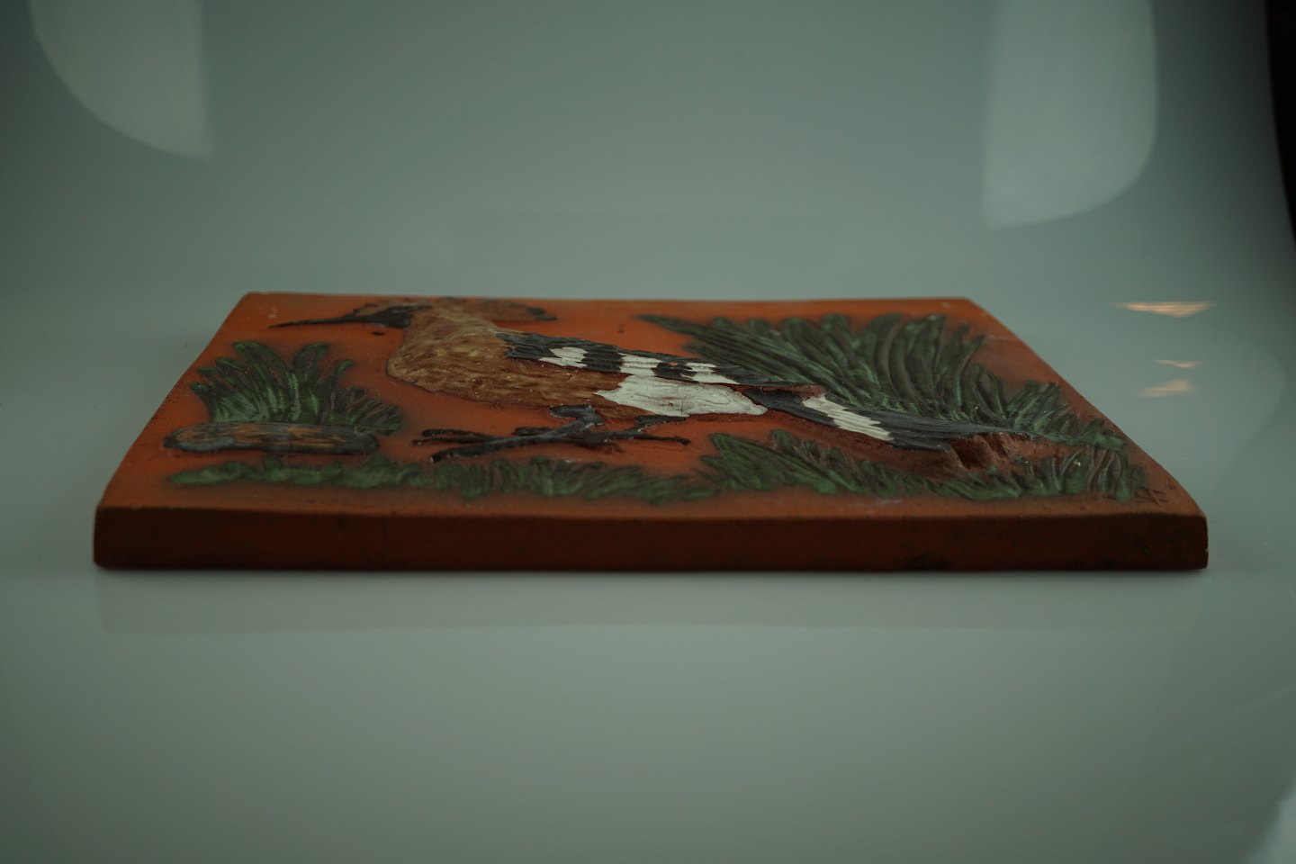 Rødlers relief af hærfugl. Relieffet er 1 ud af en serie på 7 relieffer.