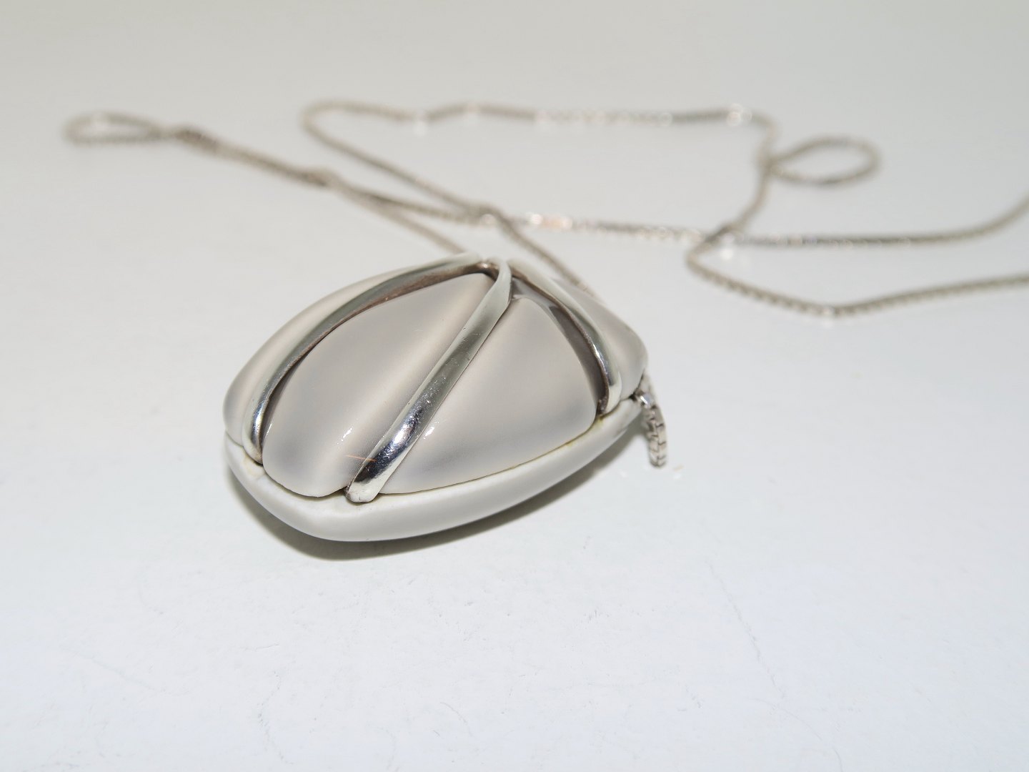 Royal Copenhagen halskæde med vedhæng i form af skarabæ i porcelæn monteret med sterlingsølv.
