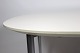 Spisebord med hvid laminat og stål ben af dansk design. Bordet er i flot brugt stand og med 2 udtræksplader samt et femte ben for støtte.
