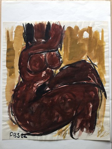 Pastel af Peder Brøndum Sørensen - Nøgen kvindelig model 1962.