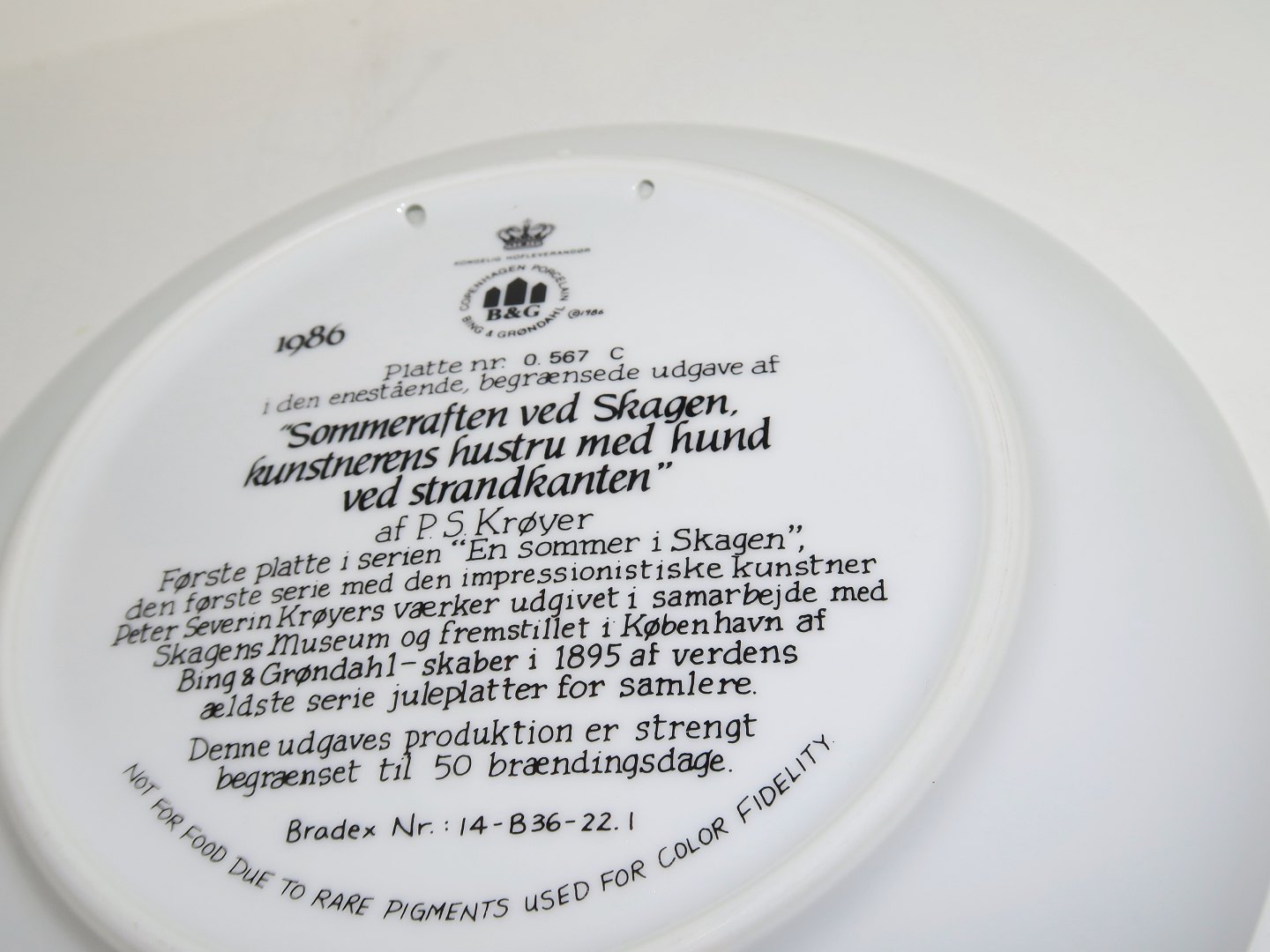 Bing & Grondahl plate from 1986 with paintings from Skagen, Summer evening in Skagen by P.S. Kroeyer.