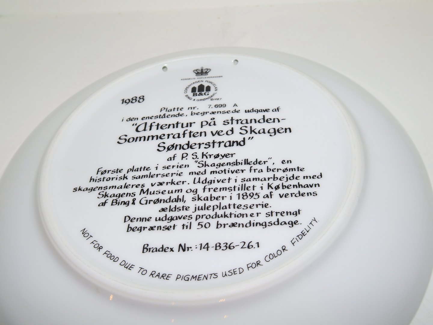 Bing & Grøndahl platte fra 1988 med Skagensbilleder, Aftentur på Stranden af P.S. Krøyer.