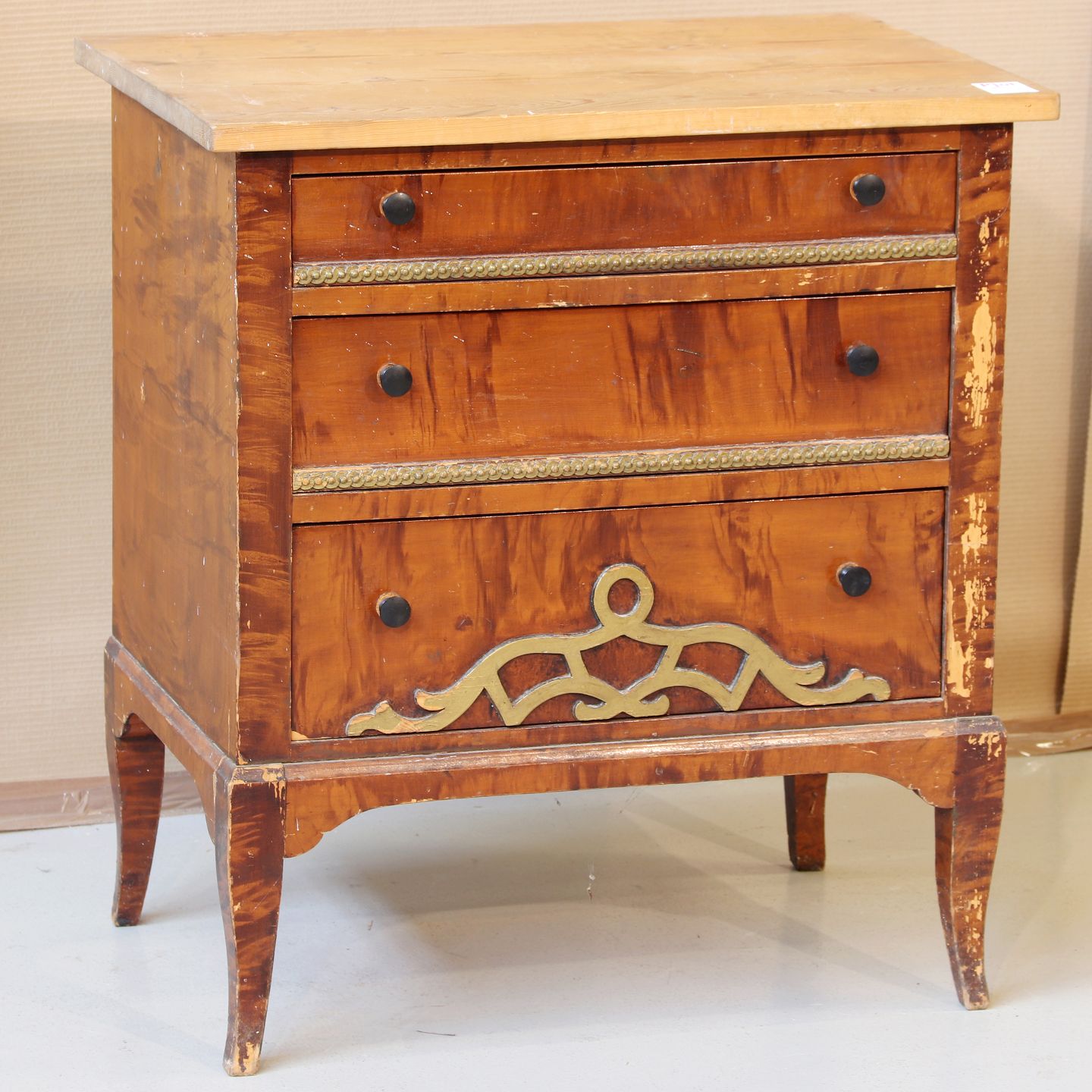 Malet kommode i fyrretræ m. 3 skuffer, (HxBxD 75x68x44 cm), ca. 1930