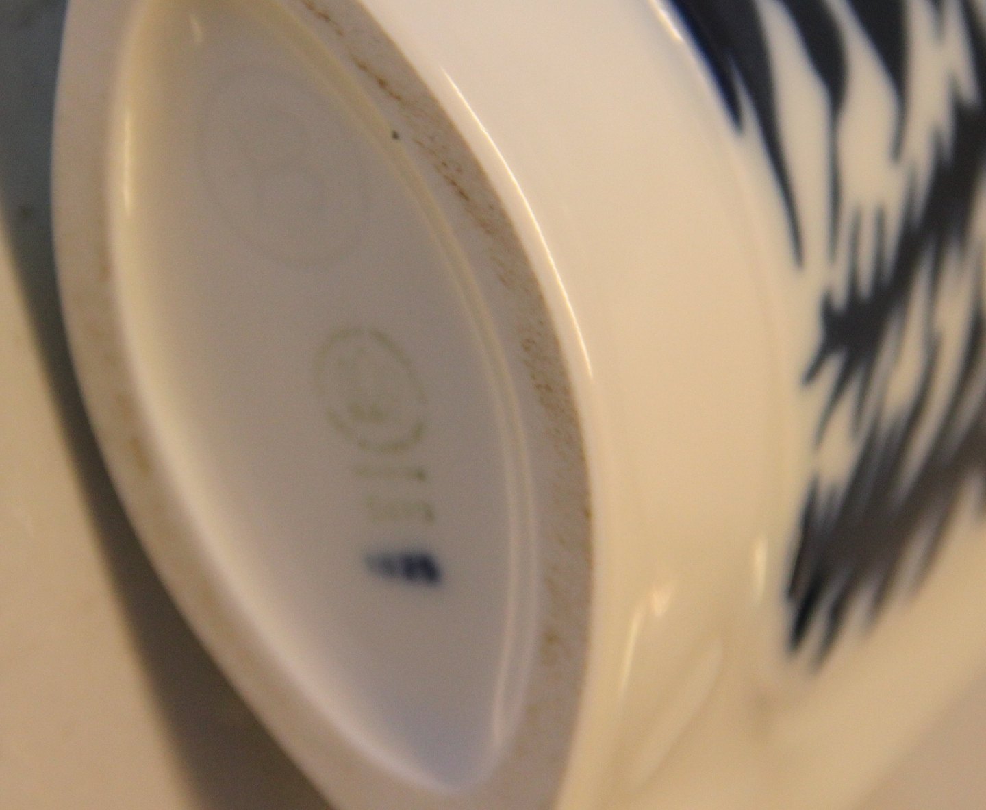 Bing & Grøndahl B&G 5419 Oval Moderne vase med blå dekoration 14 x 12.5 cm Else Kamp Jensen I fin og hel stand.