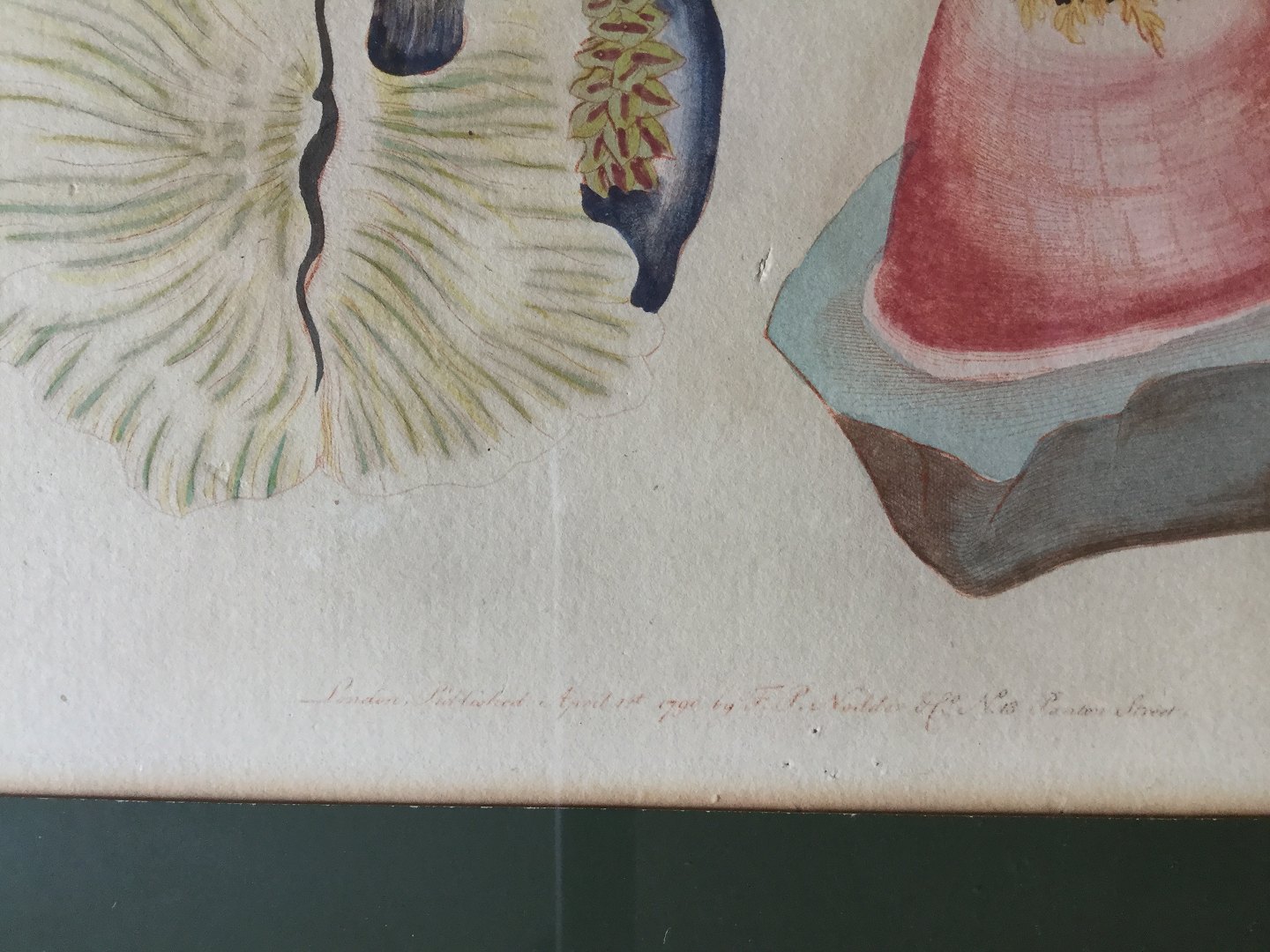 Text available in Danish: Engelsk, håndkoloreret kobberstik fra 1790 af George Shaw - Søanemone.
